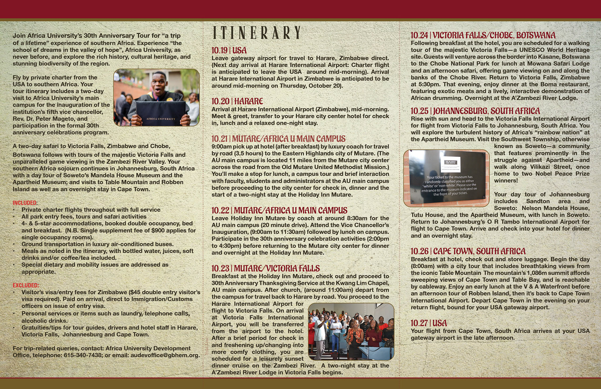 A tour of southern africa trip | 3 panel brochure