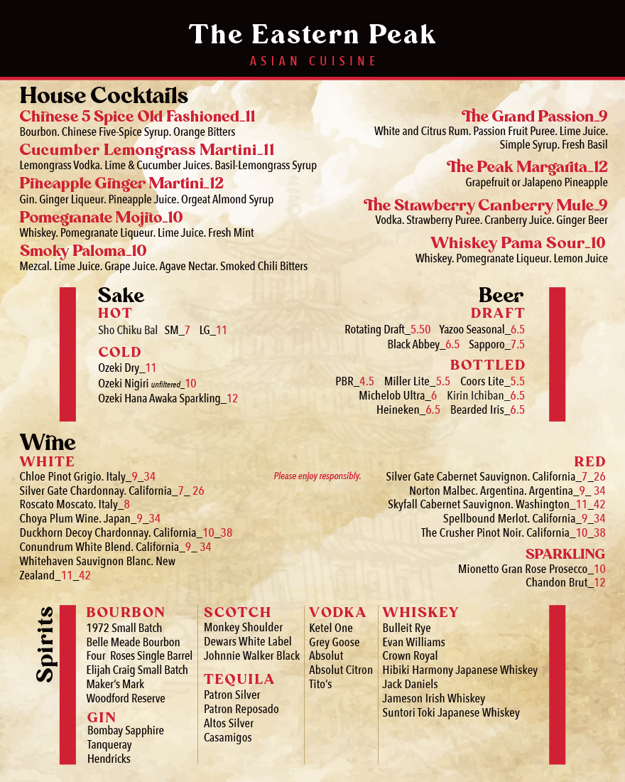 The Eastern Peak: Drink Menu