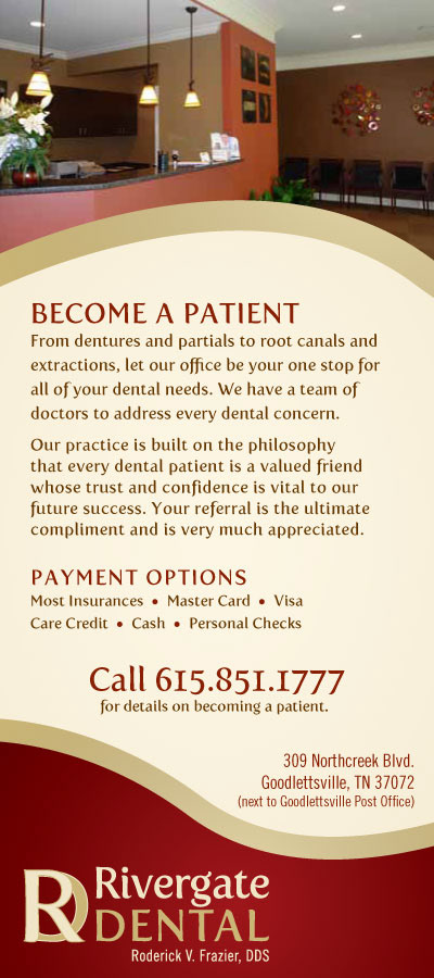 Rivergate Dental Marketing Card [logo design/card layout by Marlo Ross]