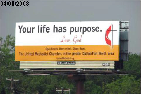 UMC Central Texas Conference: Billboards between Fort Worth and Dallas. General Conference 2008